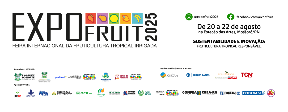A Expofruit 2023 é uma realização do COEX - Comitê Executivo de Fruticultura do Rio Grande do Norte, do Serviço Brasileiro de Apoio às Micro e Pequenas Empresas (Sebrae/RN) e da Universidade Federal Rural do Semi-árido (Ufersa) e conta com a promoção da PromoExpo.